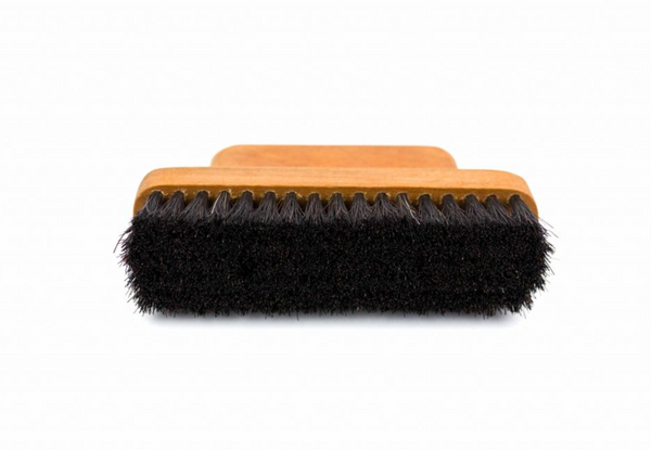 Cepillo para madera rectangular de pelo de caballo oscuro con agarre pequeño.