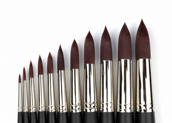 Virola de níquel sin costuras, cepillo redondo con punta perfecta. Para pinturas acrílicas, témperas y óleos de excelente calidad artística.